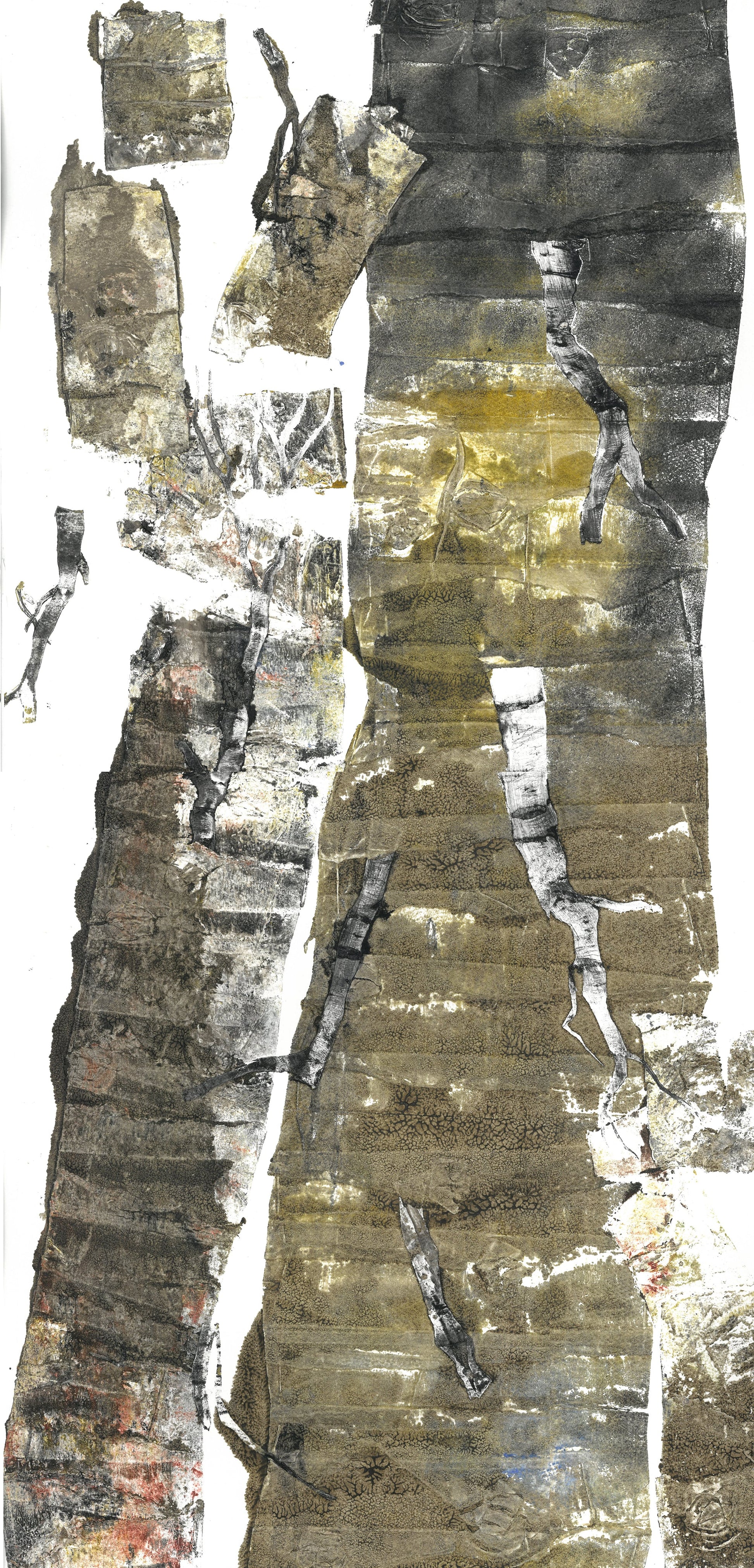 Engraving, collagraph and monotype on Fabriano Artistico 650gsm 100% cotton paper, with dust from Dyngjusandur, Eyrardalur, and Snæfellsjökull glacier, pigment, and lapis lazuli.